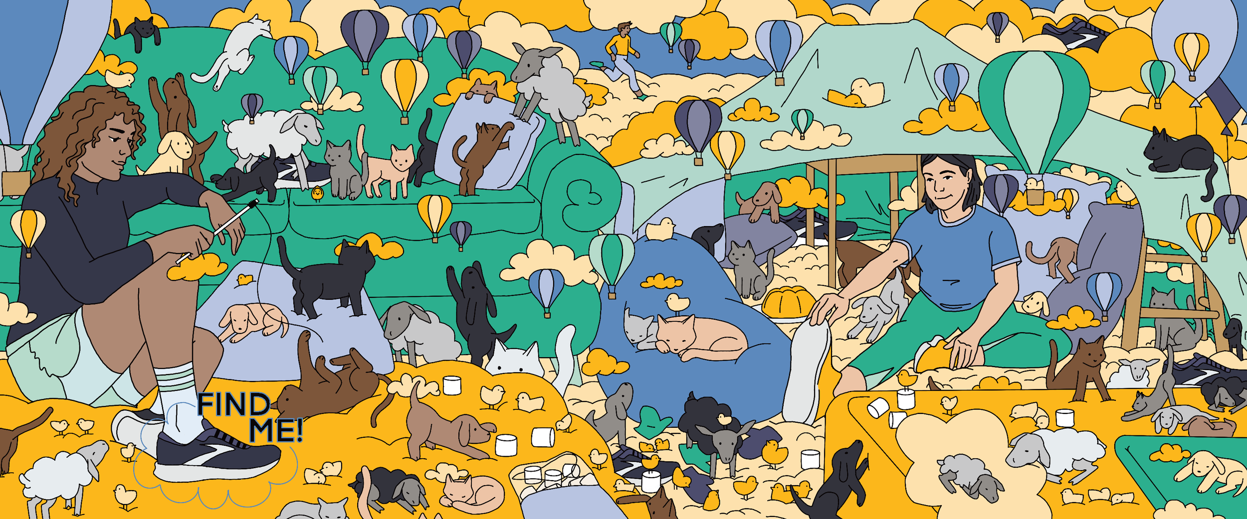 For the launch of a new Brooks brand campaign called Find Your Run, we created a social series that highlighted the experience of running in three of their new shoes. Whether runners were looking for the experience of running on clouds, or looking for a shoe built for speed, we wanted to show them that they could find their run. So, we created a series of seek-and-find illustrated scenes, and challenged audiences on TikTok and Instagram to count the shoes in each scene and comment for a chance to win a pair. These posts enjoyed high engagement across platforms at launch.